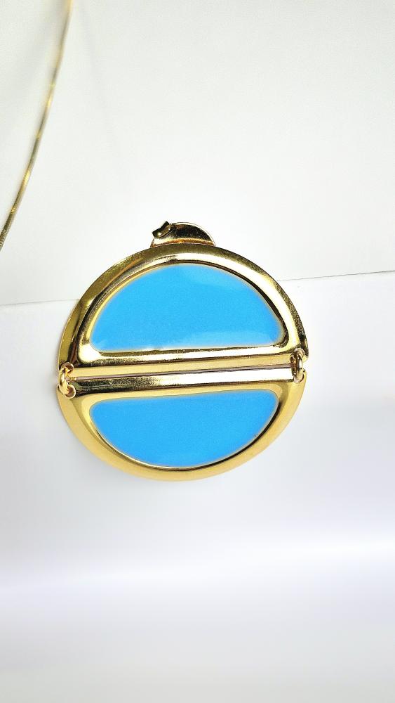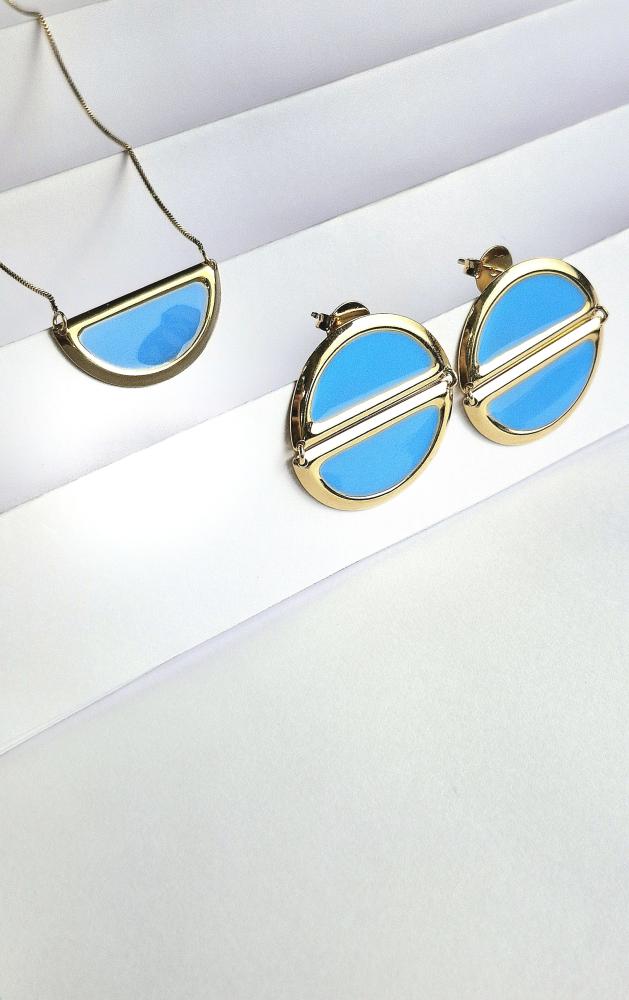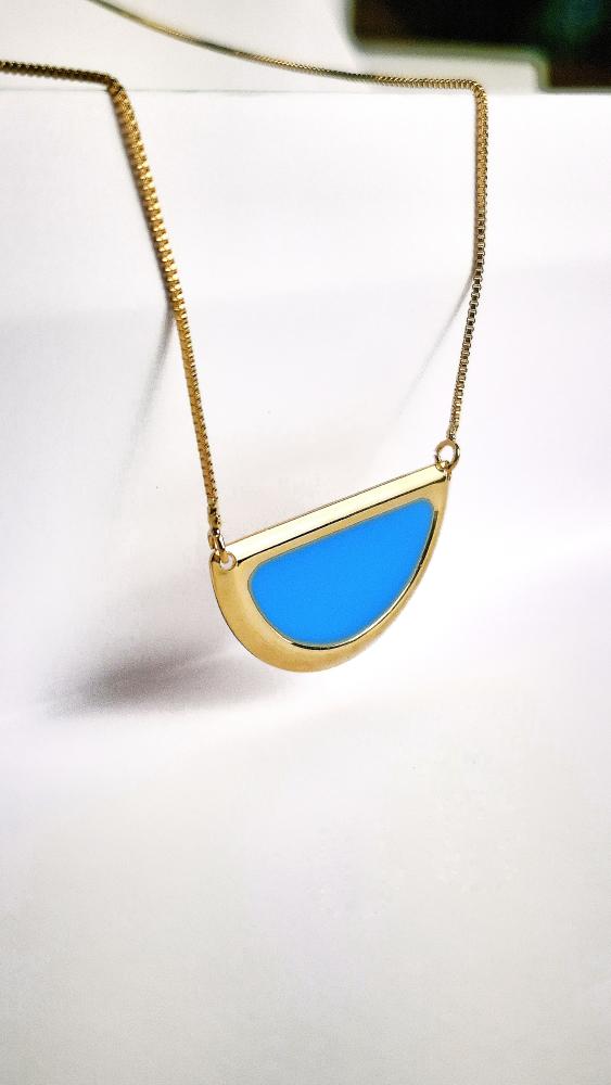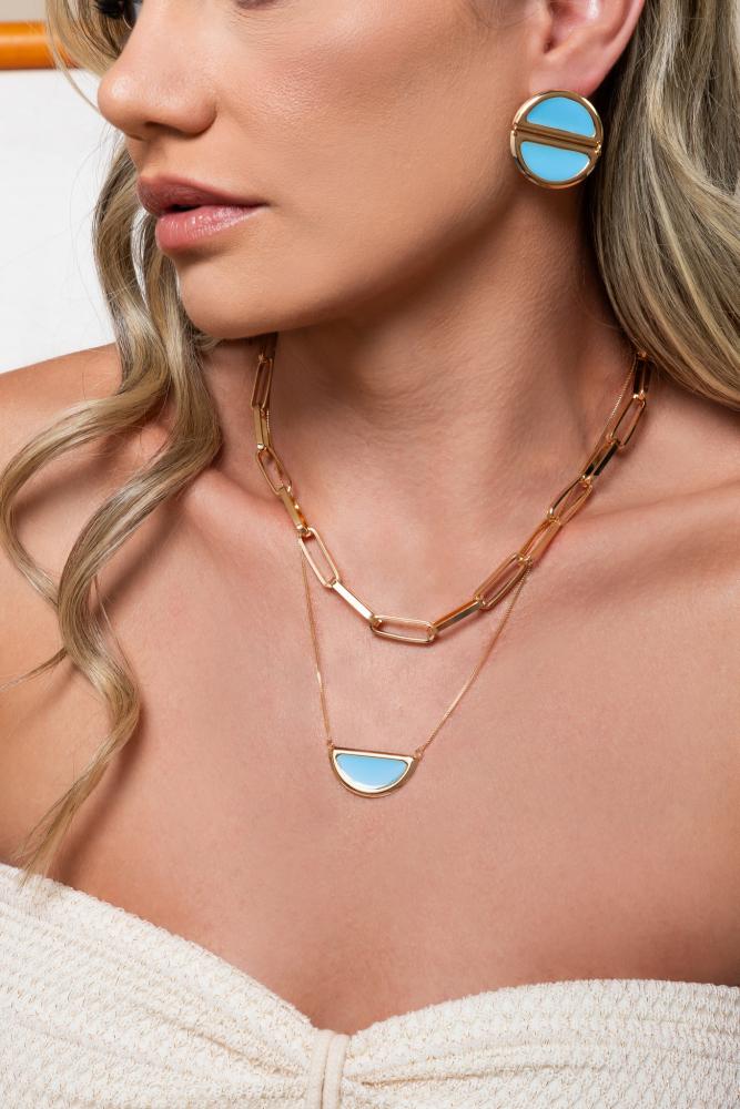 Colar banhado no ouro 18k com meia esfera na cor turquesa.