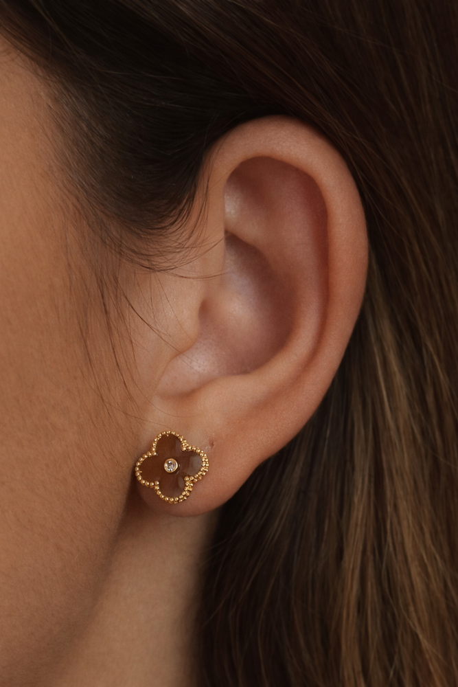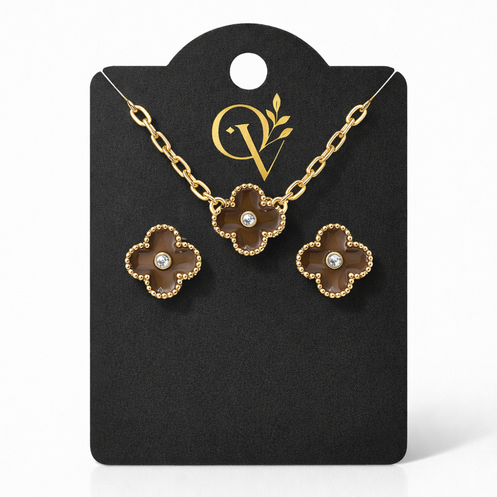 CONJUNTO TREVO MARROM ESMALTADO BM2013-O / CH359-O