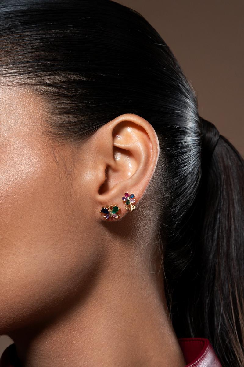 .Brinco flor zircônia colorida: