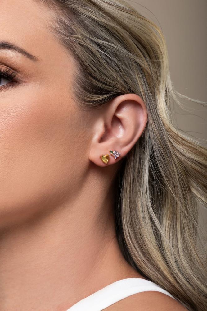 BRINCOS DUPLA UVA E CORAÇÃO AMARELO 235641