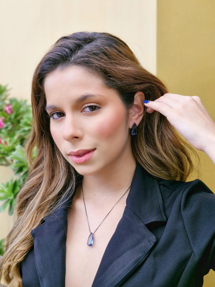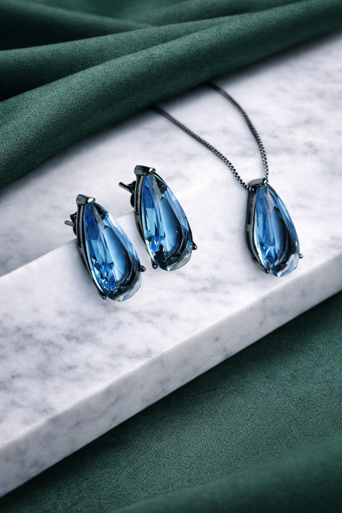 Conjunto Gota Azul Topázio no Grafite