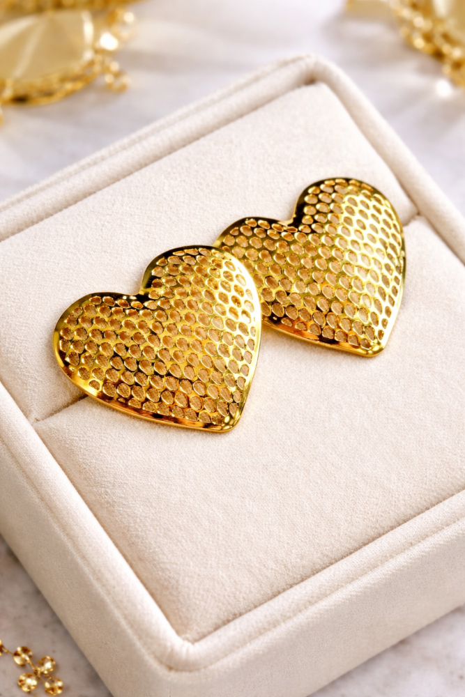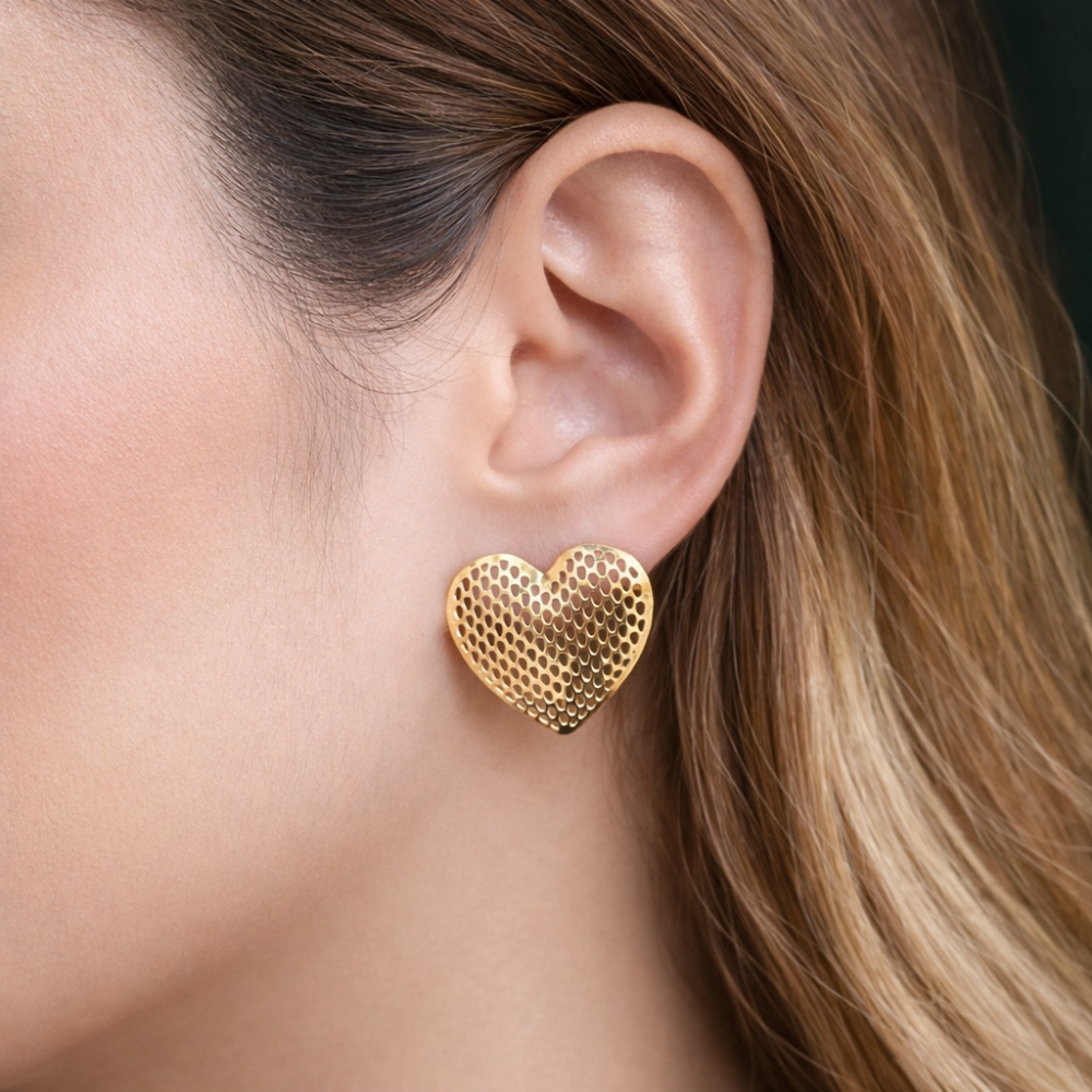 Brinco Coração Dourado Texturizado – Elegância Romântica 1147