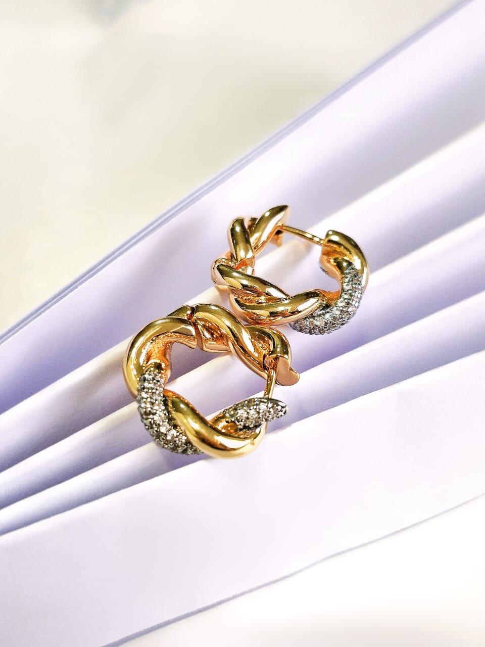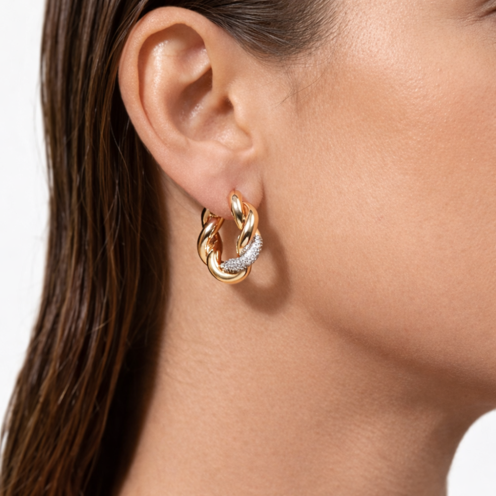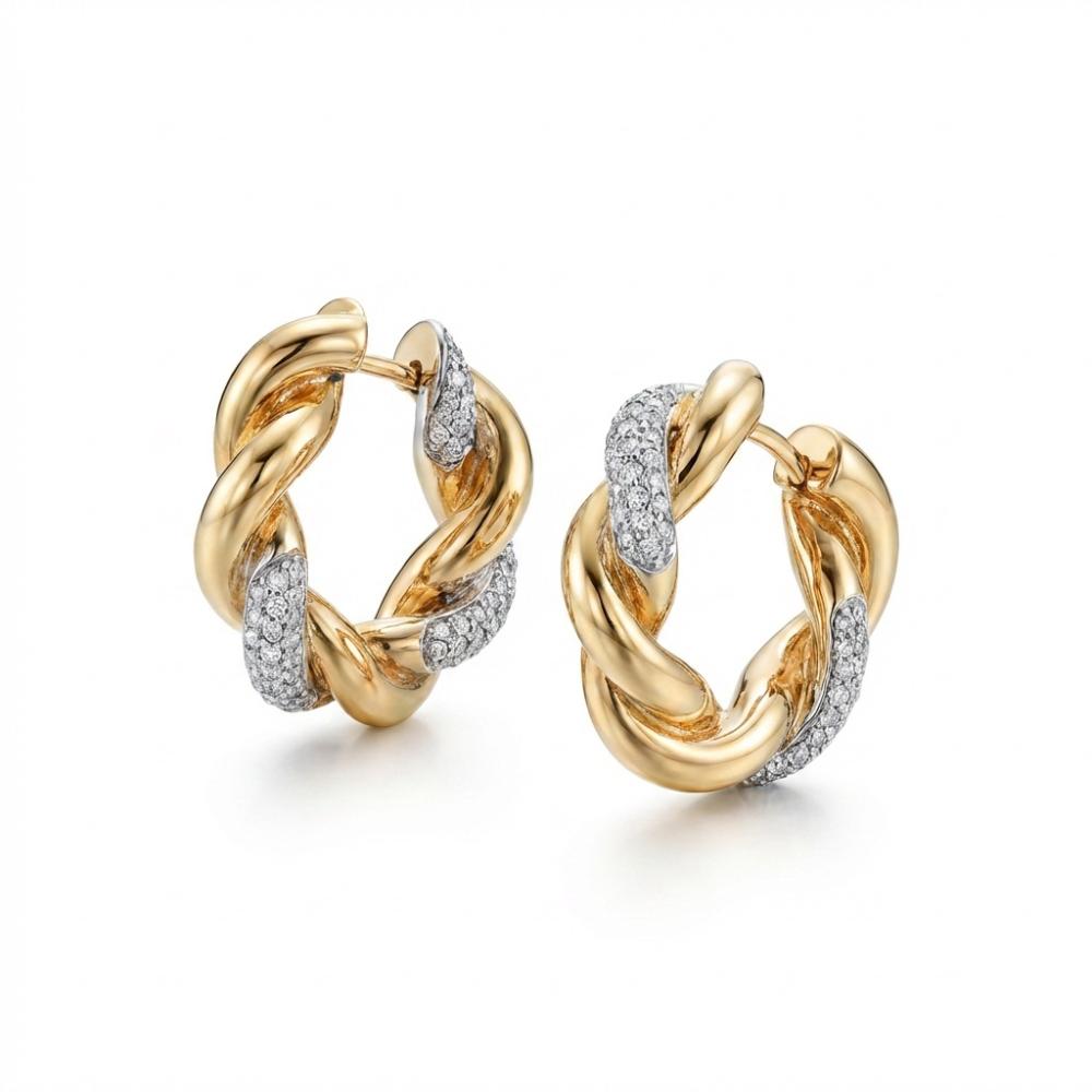 245451Brinco Argola Trançada Luxo com Zircônias
