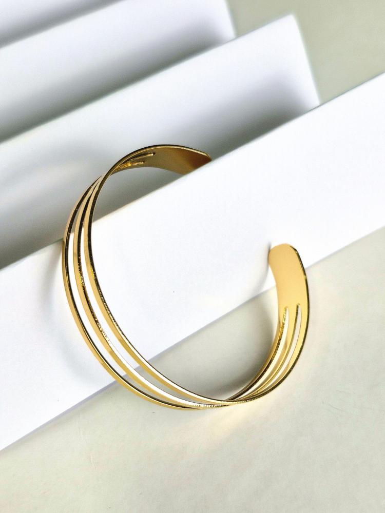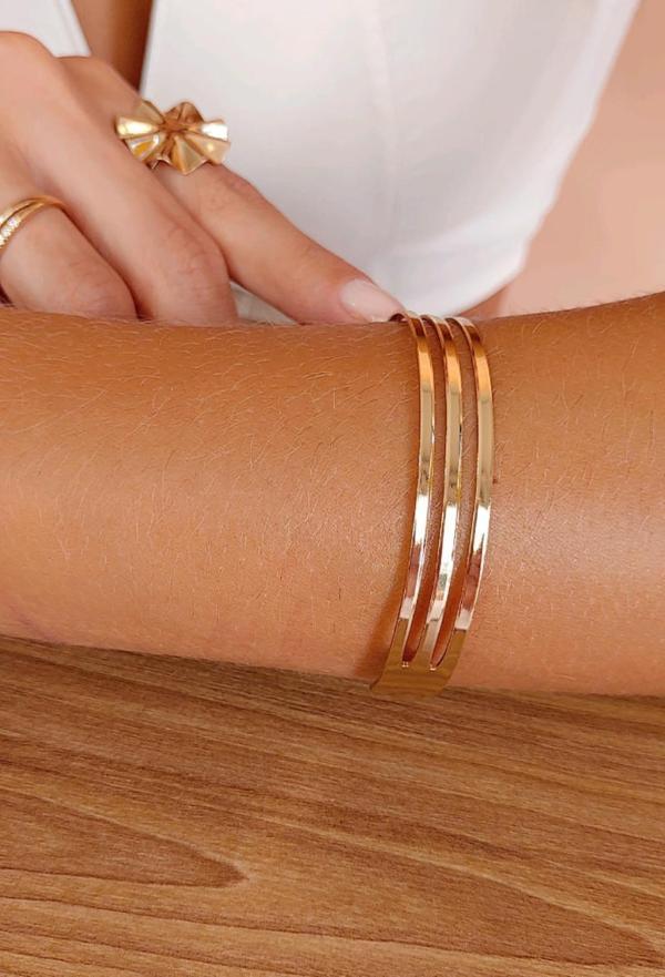 Bracelete de aro triplo no ouro Espessura total: 10mm Tamanho: