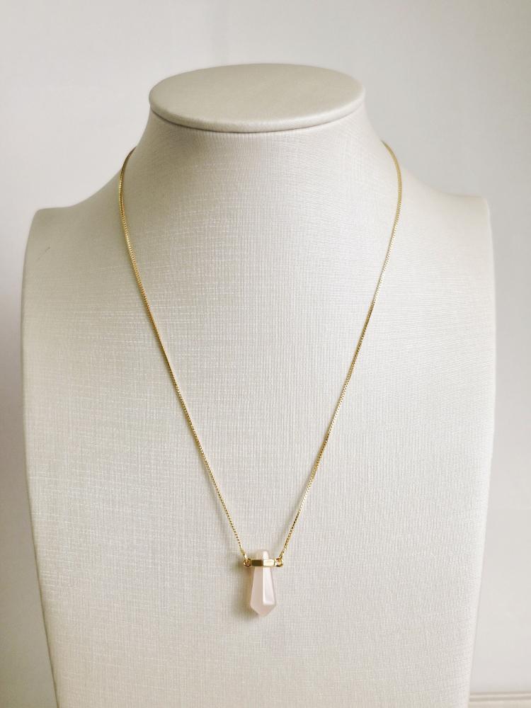 Pingente em pedra com formato de prisma de 20mm. Corrente Veneziana de 43cm + 7cm de extensor.