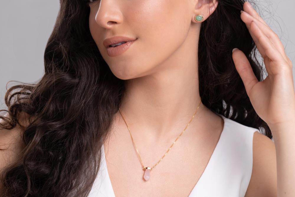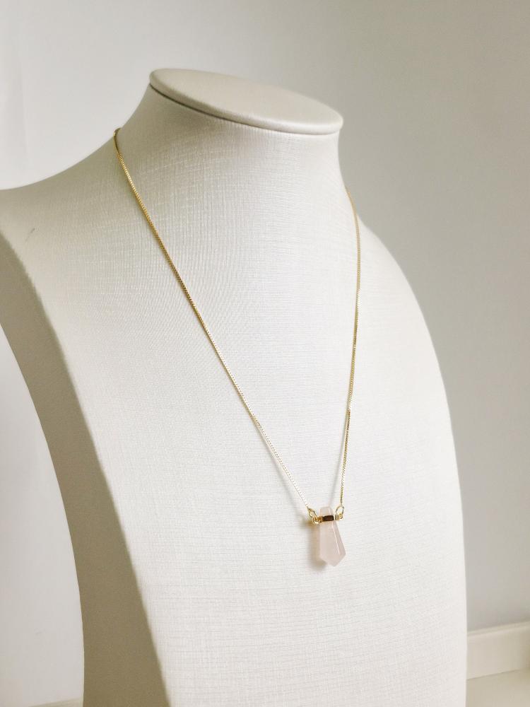 COLAR PINGENTE QUARTZO ROSA FOLHEADO A OURO 050210278 / 0278