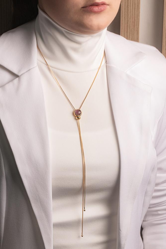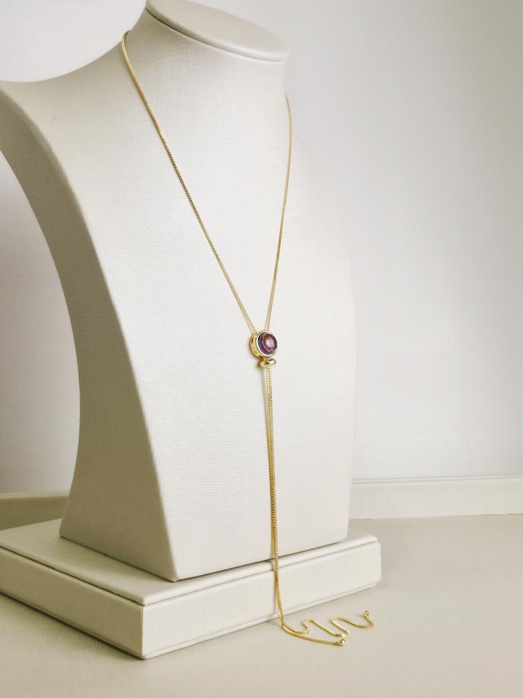 COLAR GRAVATINHA PINGENTE COM PEDRA AMETISTA 050217476 / 7476