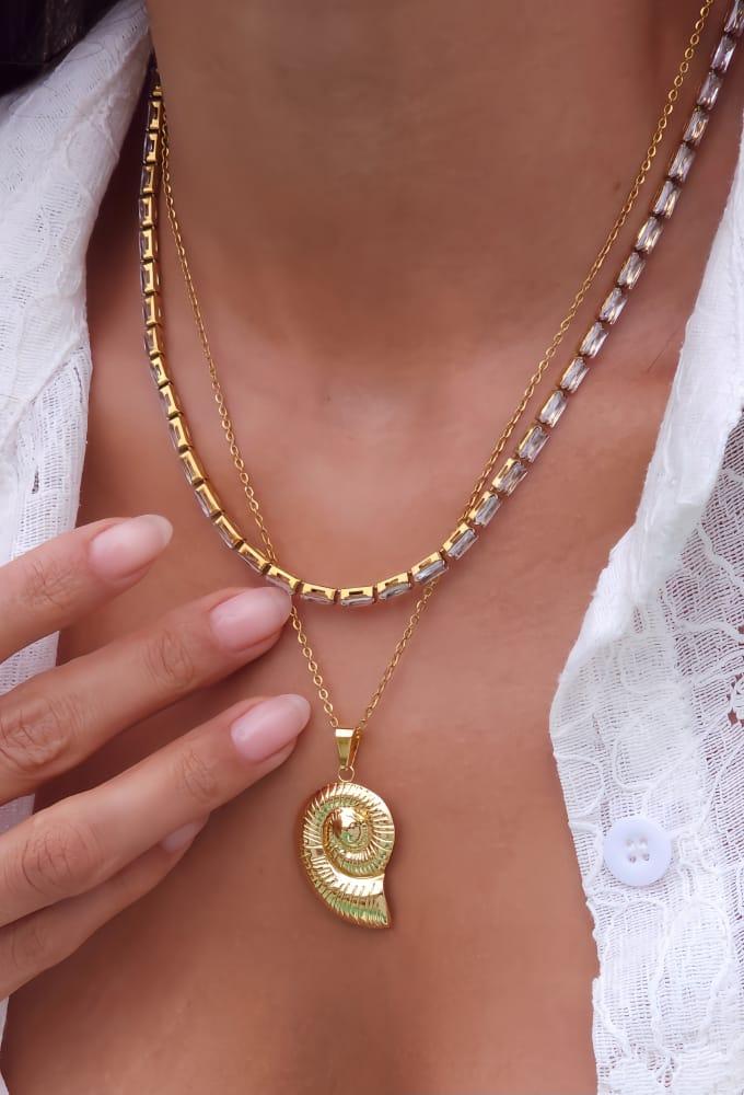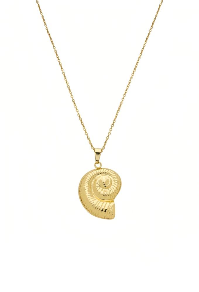COLAR COM PINGENTE DE CONCHA ESPIRAL EM AÇO INOX DOURADO CO811-AD