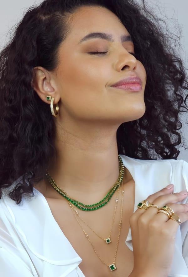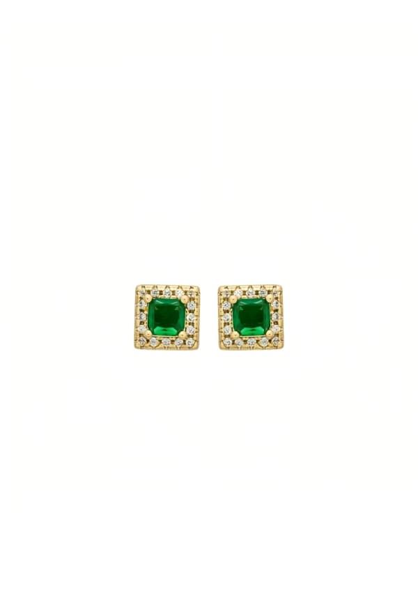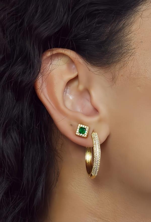 Brinco Quadrado Cravejado com Pedra Esmeralda