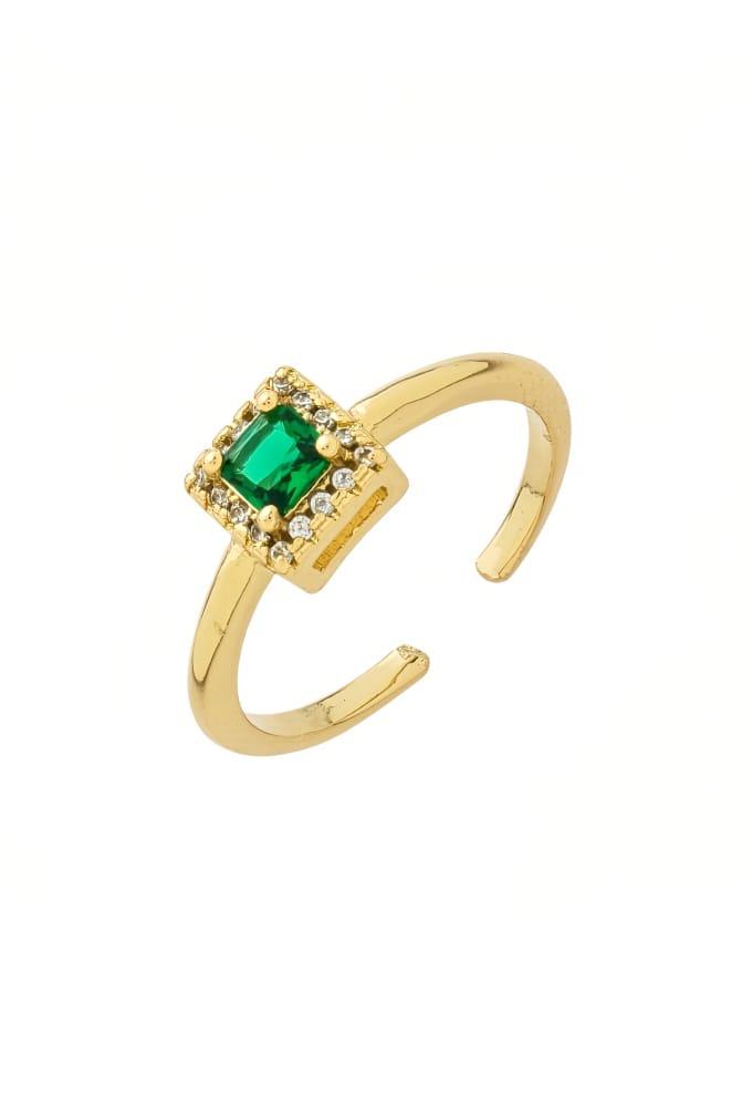 ANEL SOLITÁRIO QUADRADO REGULÁVEL PEDRA ESMERALDA E ZIRCÔNIAS AN541-O