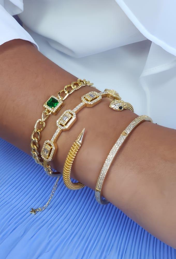 PULSEIRA ELOS COM PINGENTE QUADRADO ESMERALDA CRAVEJADA PM498-O
