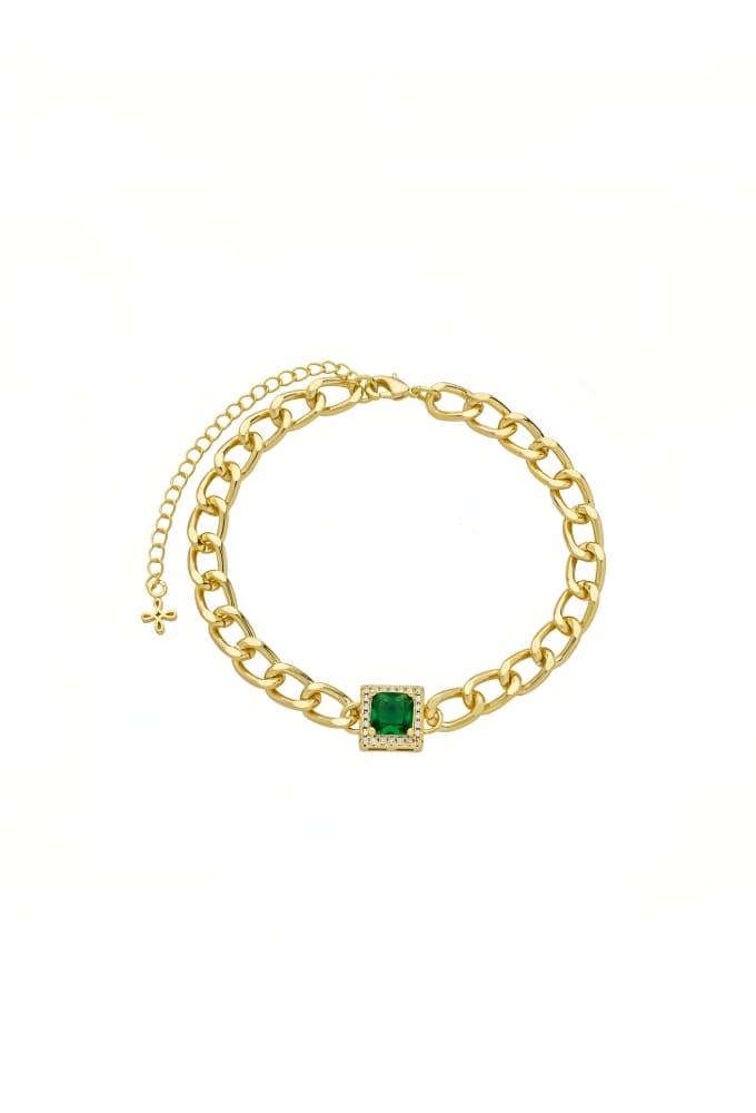 Pulseira Elos com Pingente Quadrado Esmeralda