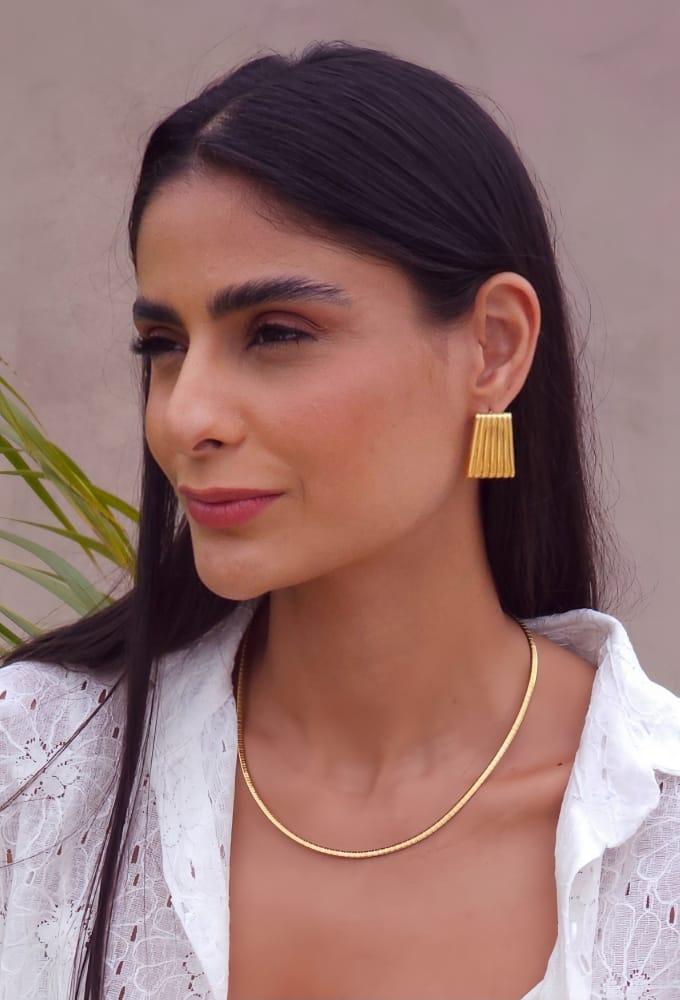 BRINCO TRAPÉZIO TEXTURIZADO EM AÇO INOX DOURADO BM2080-AD
