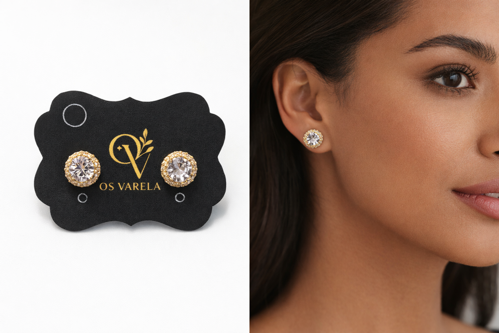 Brinco redondo médio cravejado no ouro