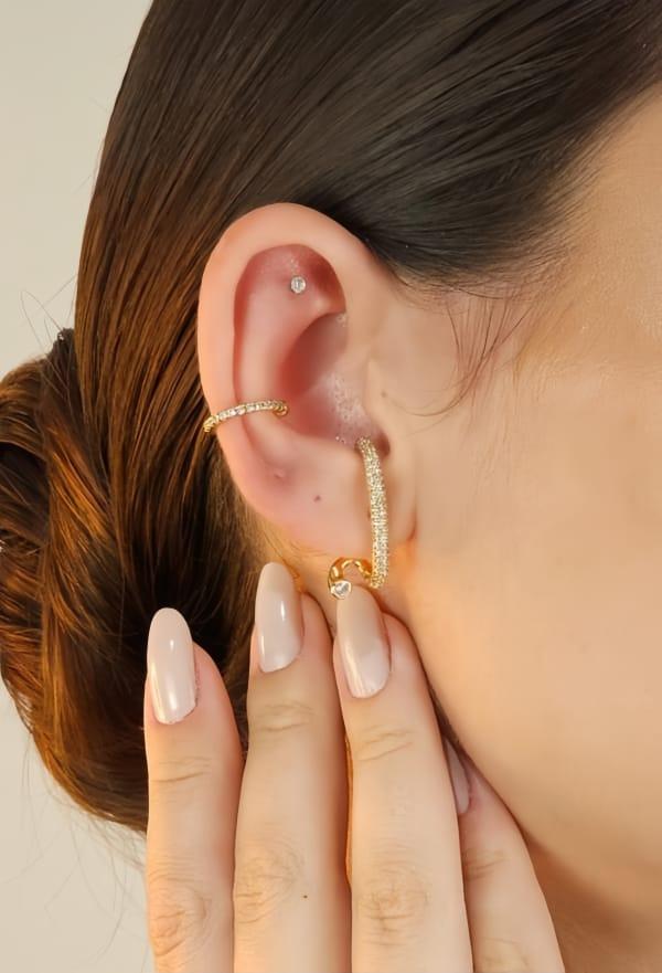 Brinco ear hook cravejado no ouro Com microzircônias cristais