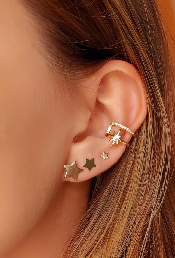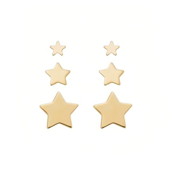 Trio de brincos de estrelas no ouro Com 3 pares de brincos