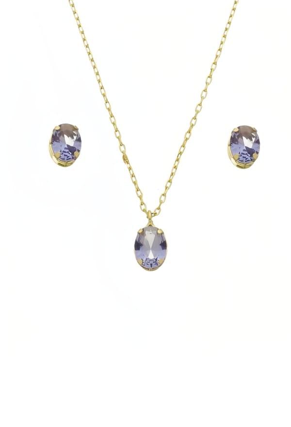 CONJUNTO COM PEDRA OVAL TANZANITA CJ087-O