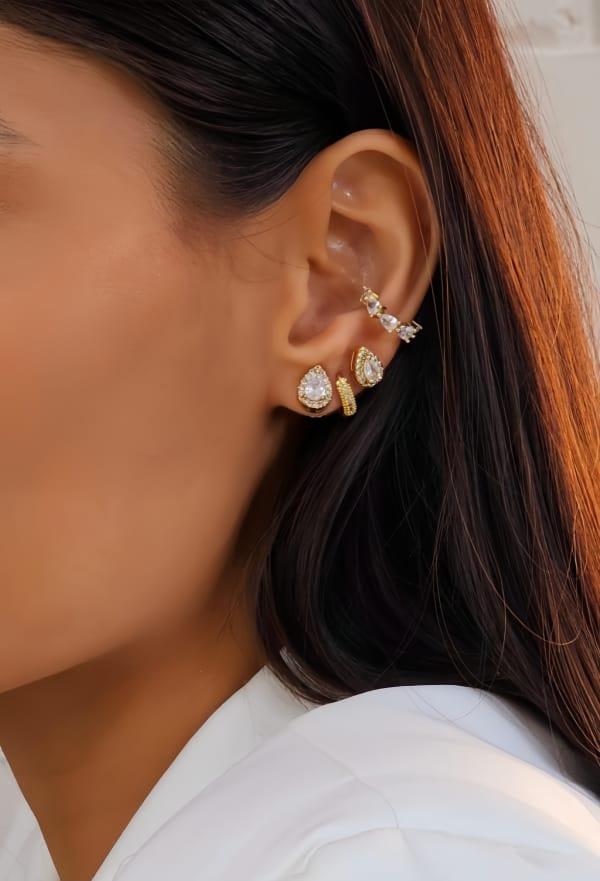 Brinco gota cravejado de zircônia g Cravejado de microzircônias cristais