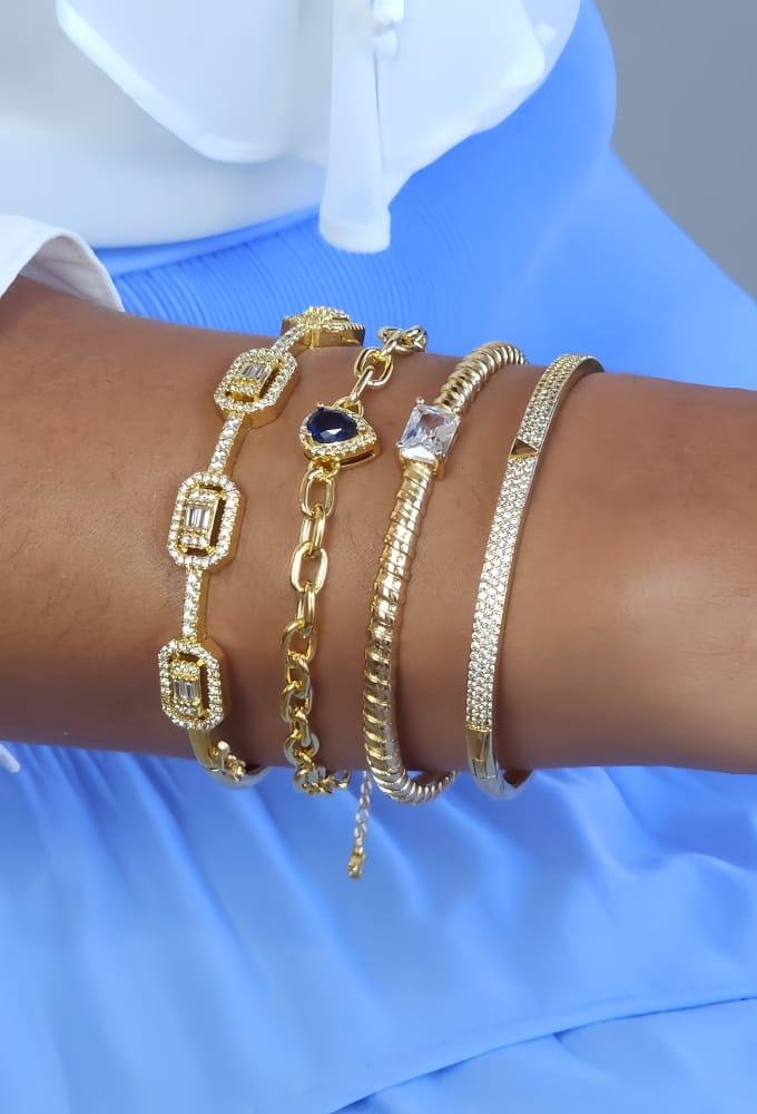 PULSEIRA CORRENTE COM PINGENTE GOTA SAFIRA CRAVEJADA PM500-O