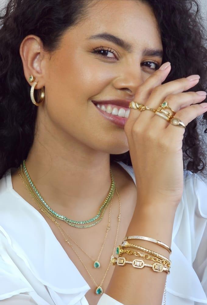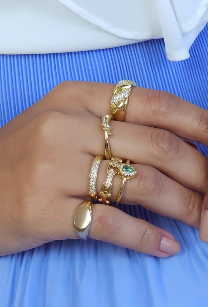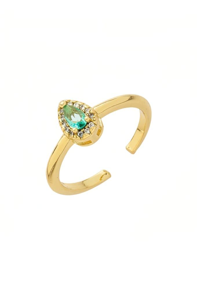 ANEL SOLITÁRIO REGULÁVEL GOTA CRAVEJADO PEDRA TURMALINA AN545-O