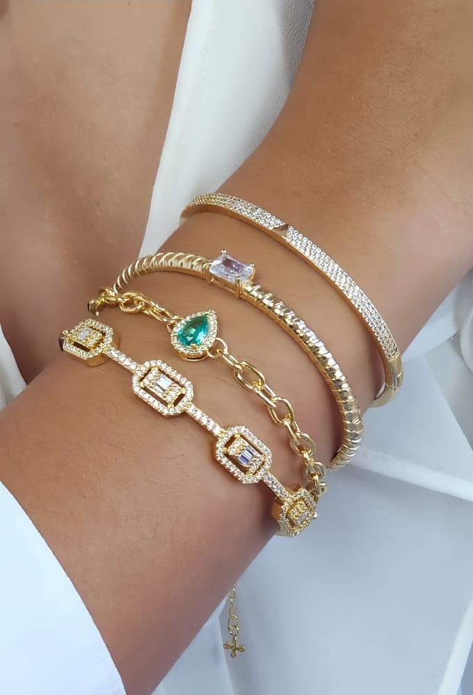 PULSEIRA CORRENTE COM PINGENTE GOTA TURMALINA CRAVEJADA PM499-O