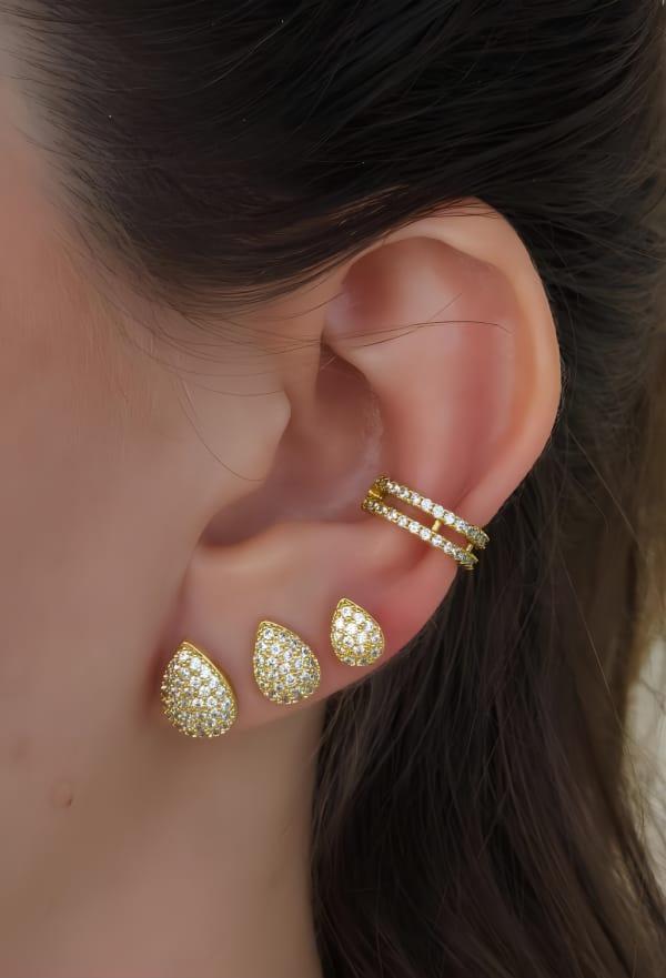 Trio brincos de gota cravejado Com microzircônias cristais Tamanho brinco grande: 9mm