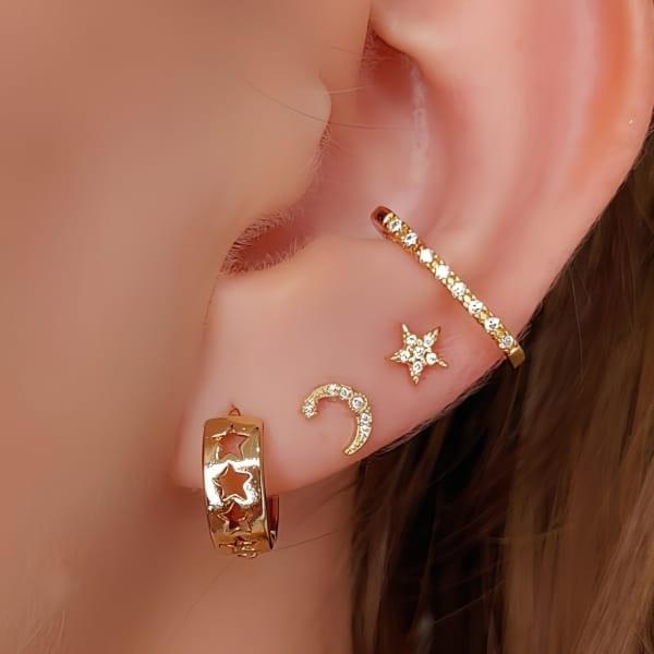 Brinco de lua pequeno cravejado no ouro Cravejado com zircônia cristal