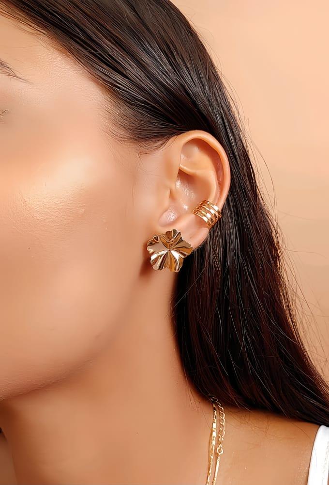Brinco de flor martelado no ouro