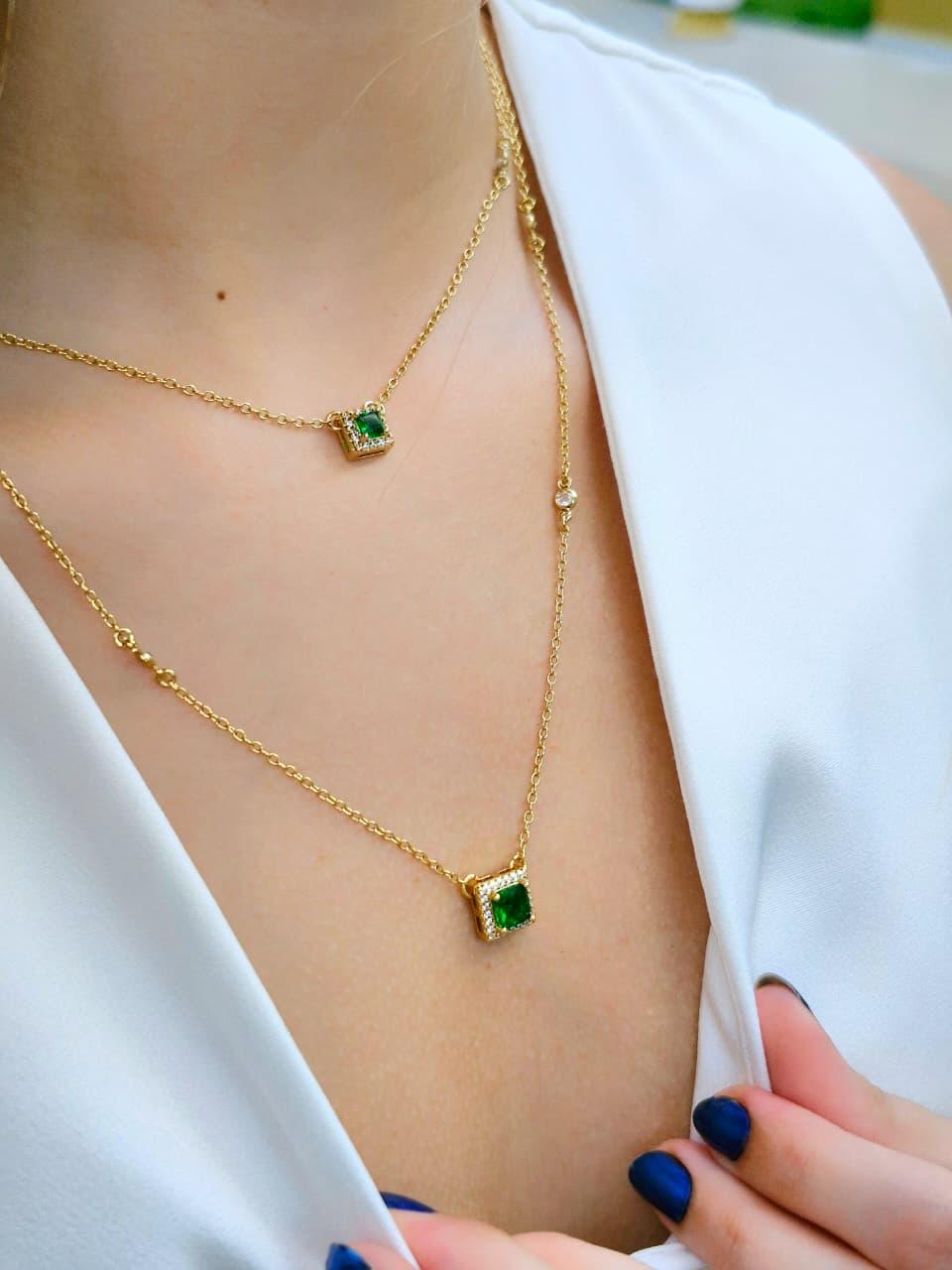 Choker Corrente com Pingente Quadrado Esmeralda Tamanho aproximado: 35 cm + 10 cm de extensor
