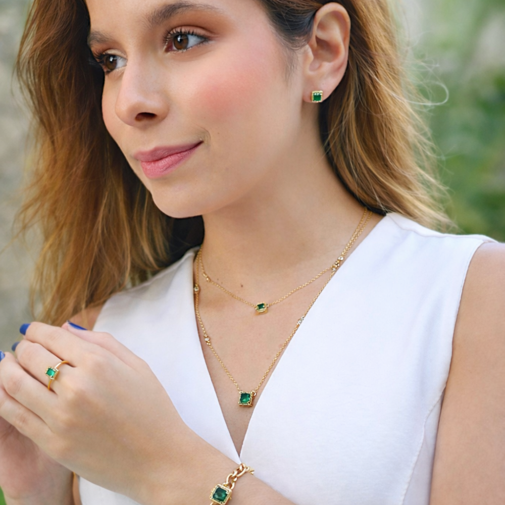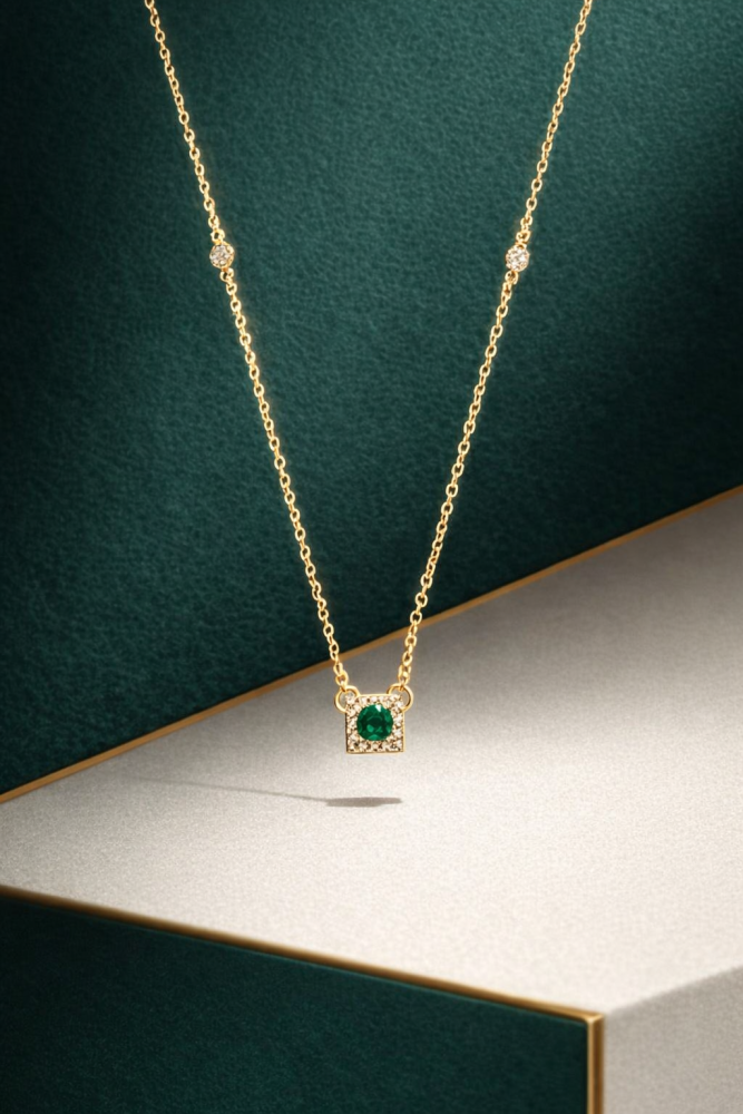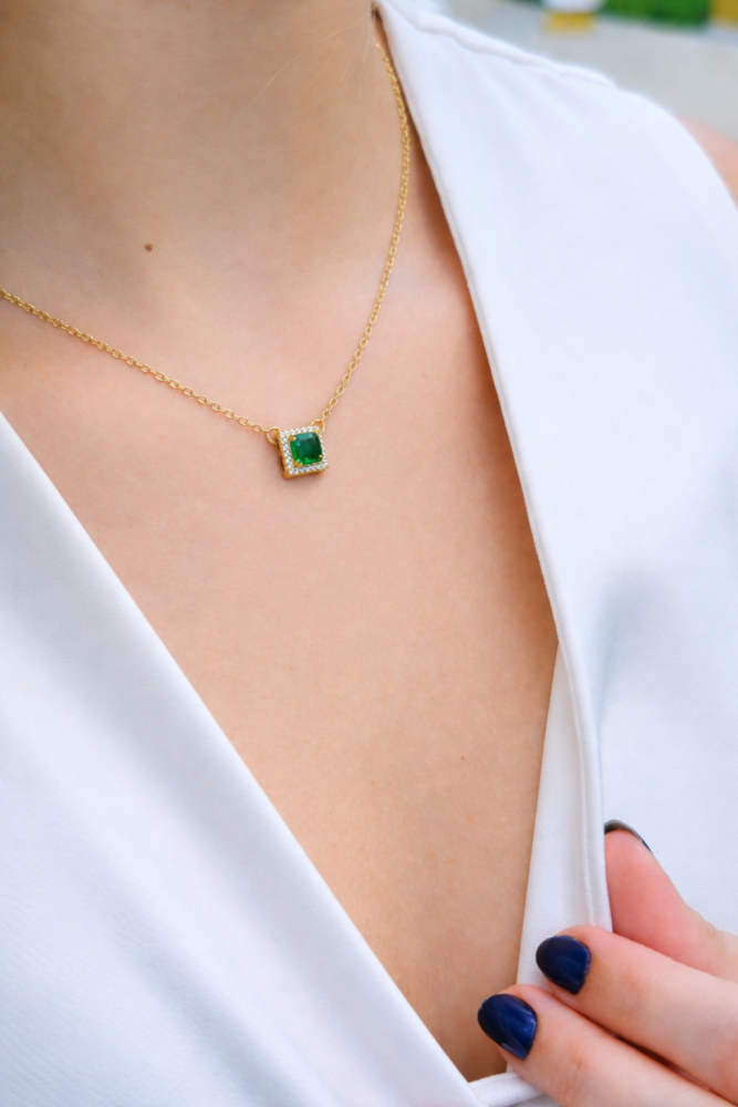 CHOKER COM PINGENTE QUADRADO ESMERALDA CRAVEJADA CH376-O