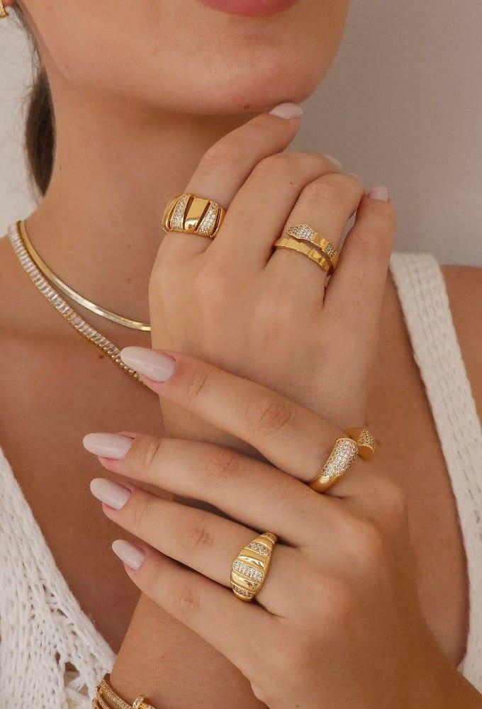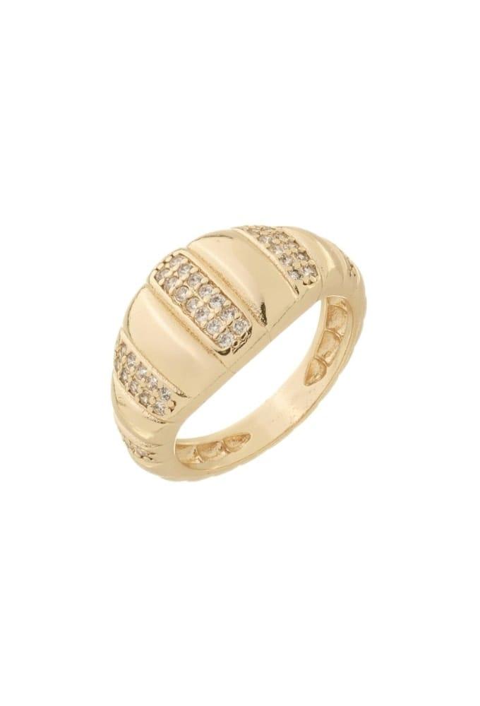 Anel croissant grande cravejado no ouro