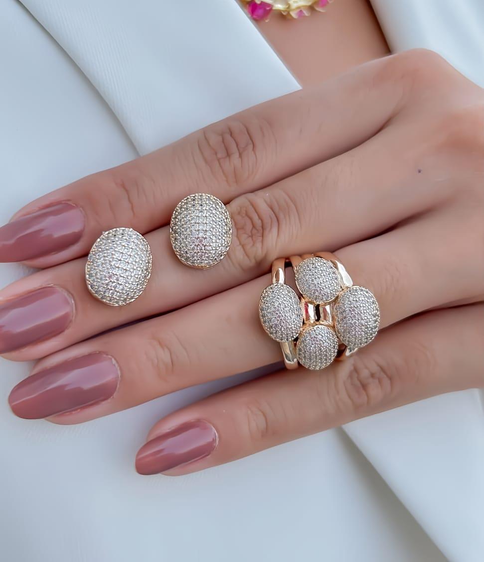 CONJUNTO ANEL E BRINCO OVAL CRAVEJADO COM ZIRCÔNIA BRANCA