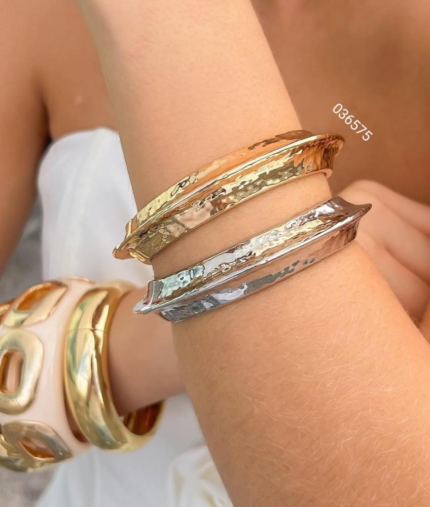 Um design sofisticado, com acabamento impecável e brilho intenso. Este bracelete folheado valoriza qualquer composição, trazendo um toque moderno e luxuoso ao look.