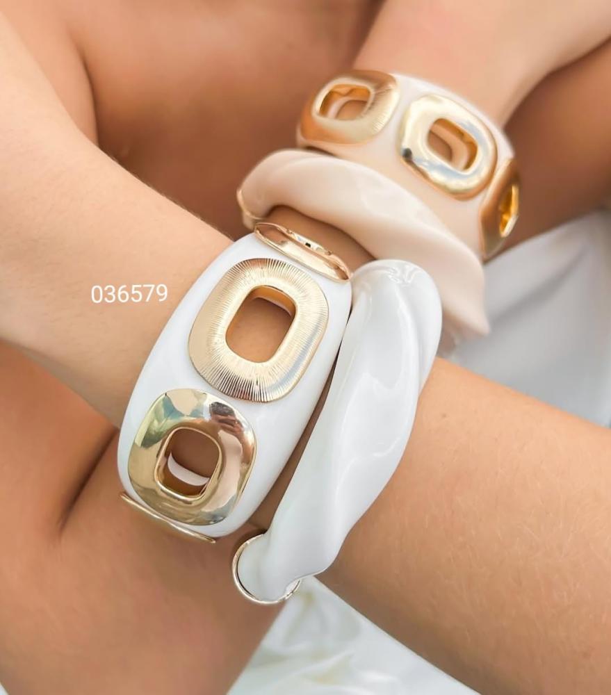Bracelete branco com detalhes dourados resina ajustável 036579