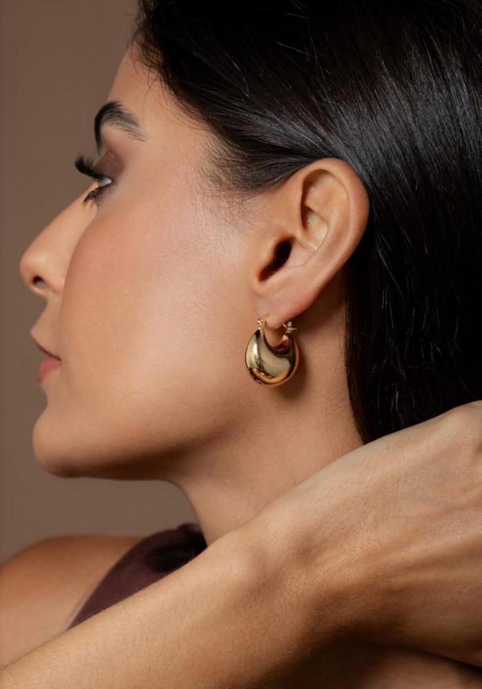 Brincos Argola modernos banhados no ouro 18k com fecho de travamento.