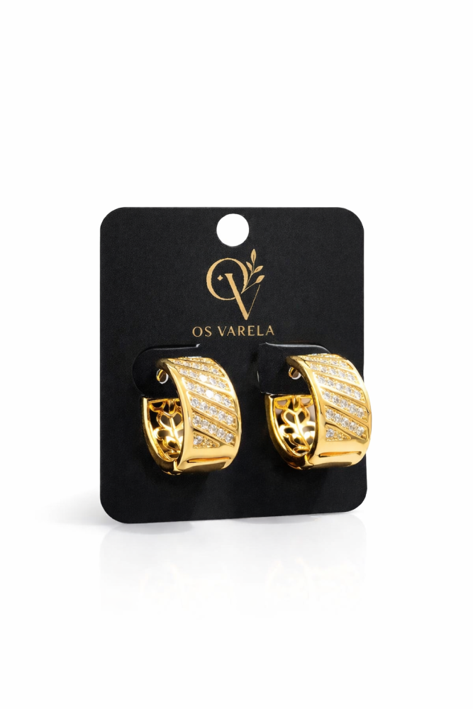 Brinco Argola Luxo Geométrica com Microzircônias BR1489
