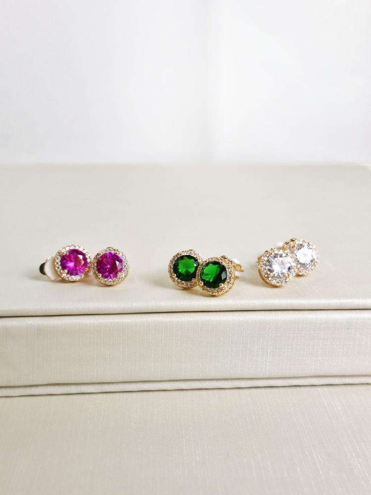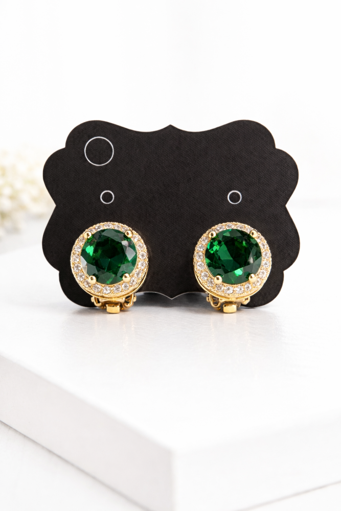 Brinco ponto de luz verde . Brincos de pressão 1518