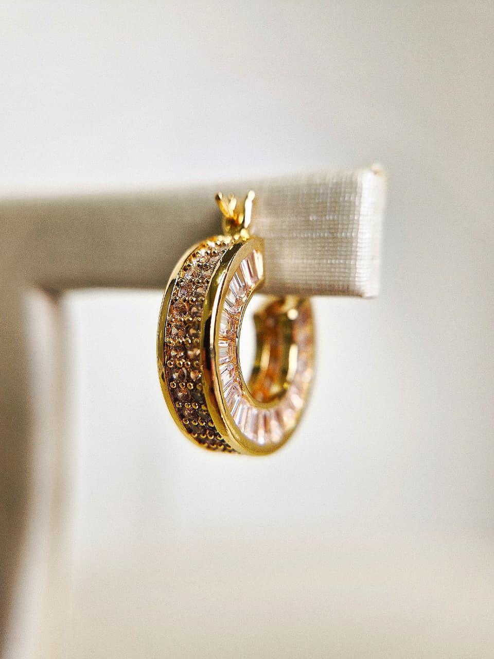 Argola em navete e microzircônias cravejadas , banho : ouro
