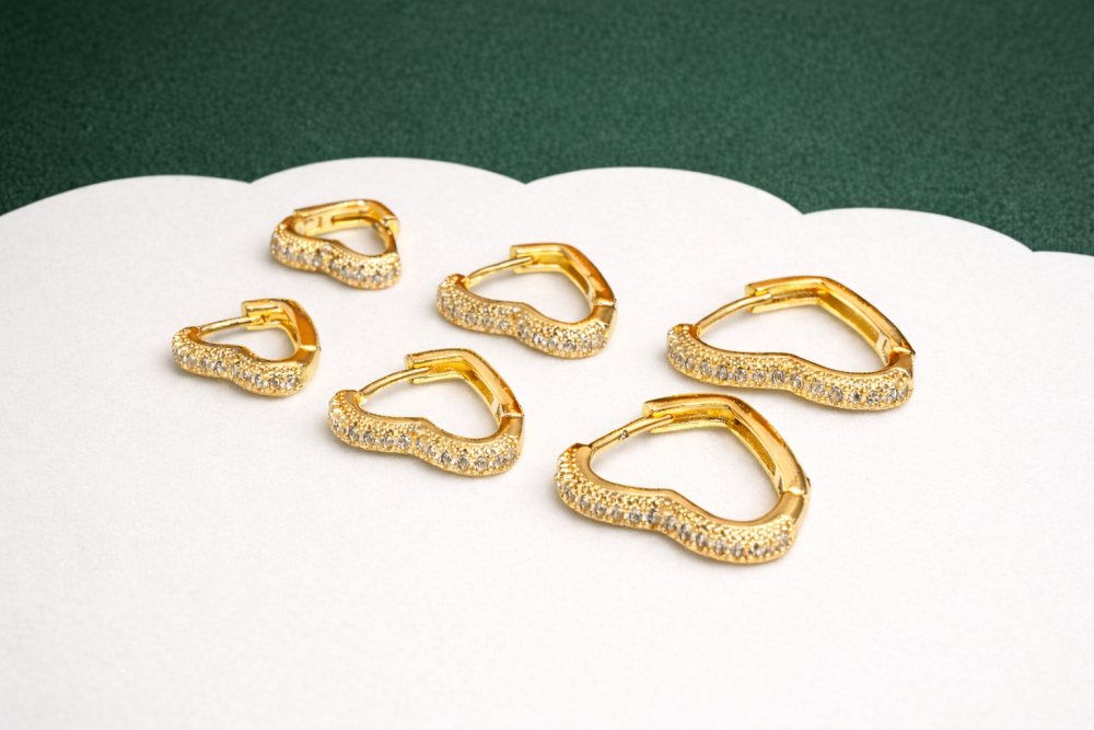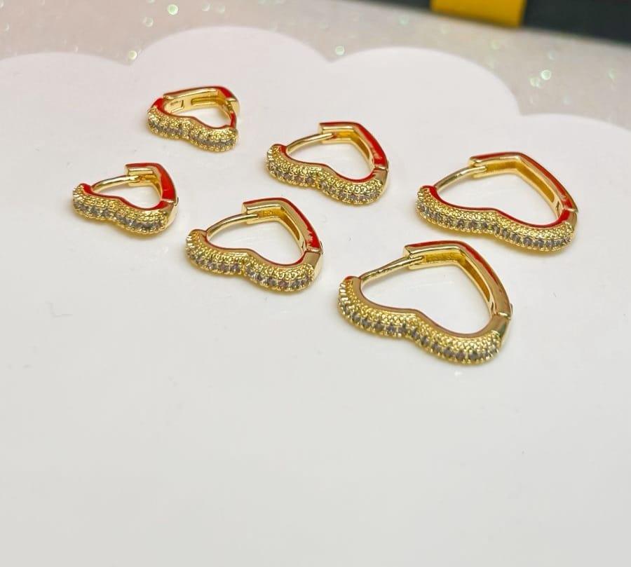 Trioa de argola coração cravejado com microzorconias brancas