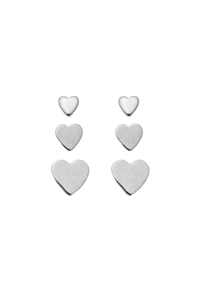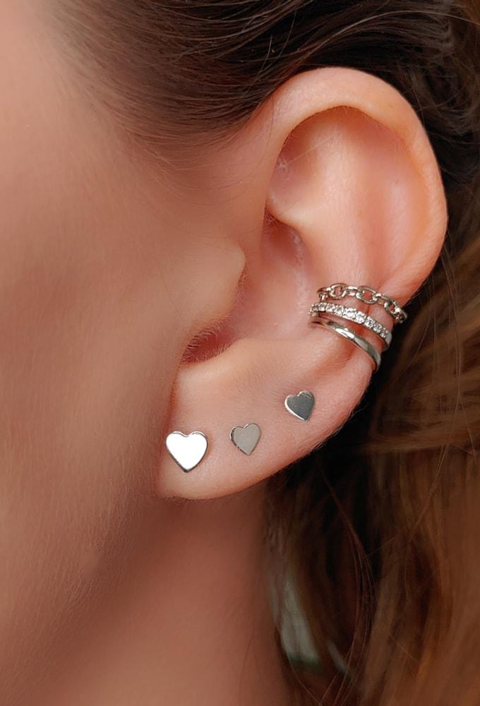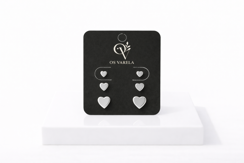 Trio de brincos de coração no ródio