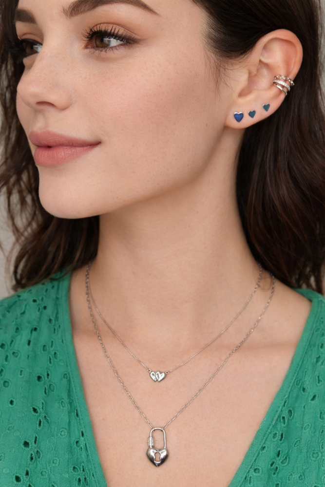 Com 3 pares de brincos de coração