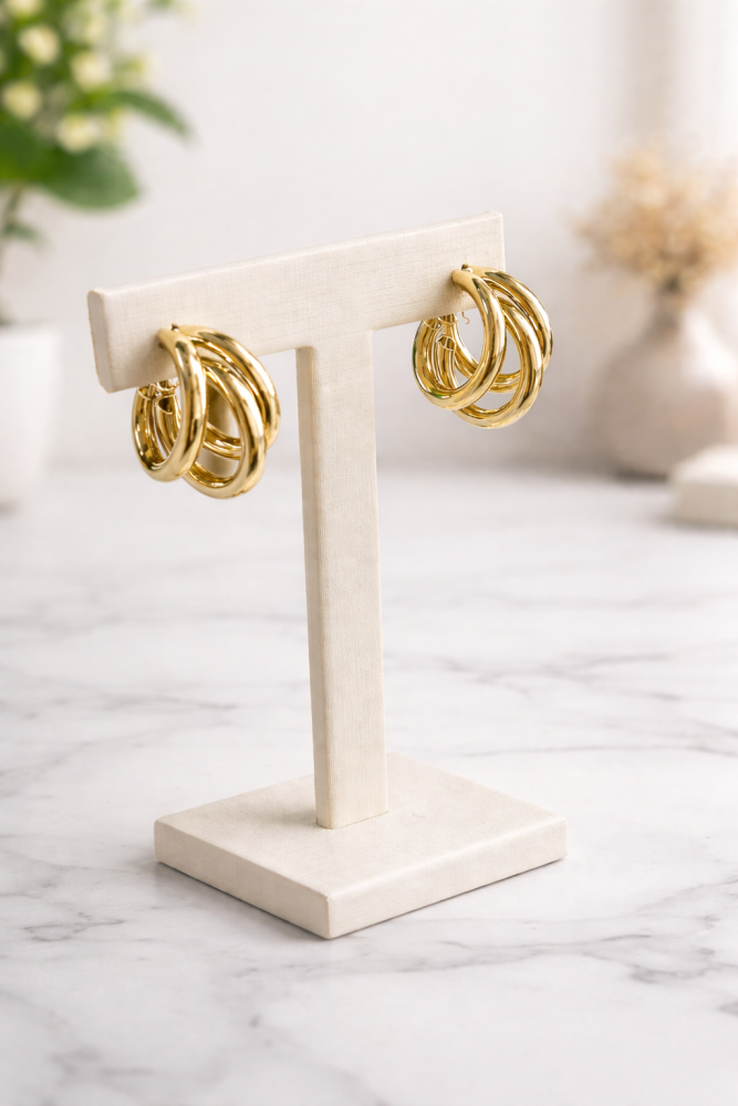 escolha perfeita para quem busca sofisticação e estilo em cada detalhe. Seu design moderno com formas entrelaçadas cria um visual elegante e marcante, ideal para complementar produções do dia a dia ou ocasiões especiais