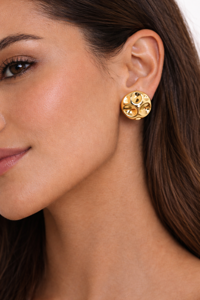 O Brinco Botão Dourado Orgânico é a escolha perfeita para quem busca elegância com um toque moderno. Seu design arredondado com textura orgânica e acabamento polido espelhado cria um efeito sofisticado e contemporâneo, refletindo a luz de forma única.
