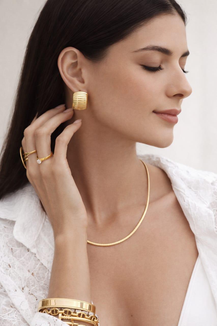 BRINCO TEXTURIZADO LISO EM AÇO INOX DOURADO BM2081-AD