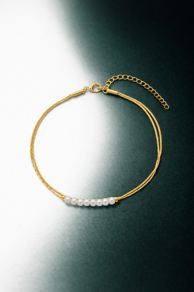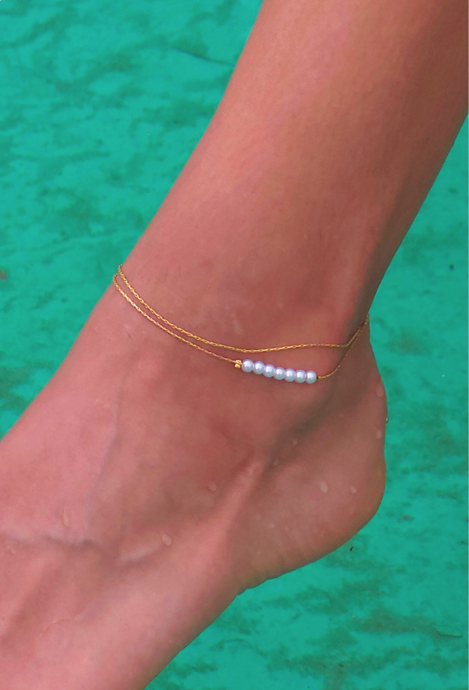 TORNOZELEIRA DUPLA COM PÉROLAS DOURADA TZM017-AD