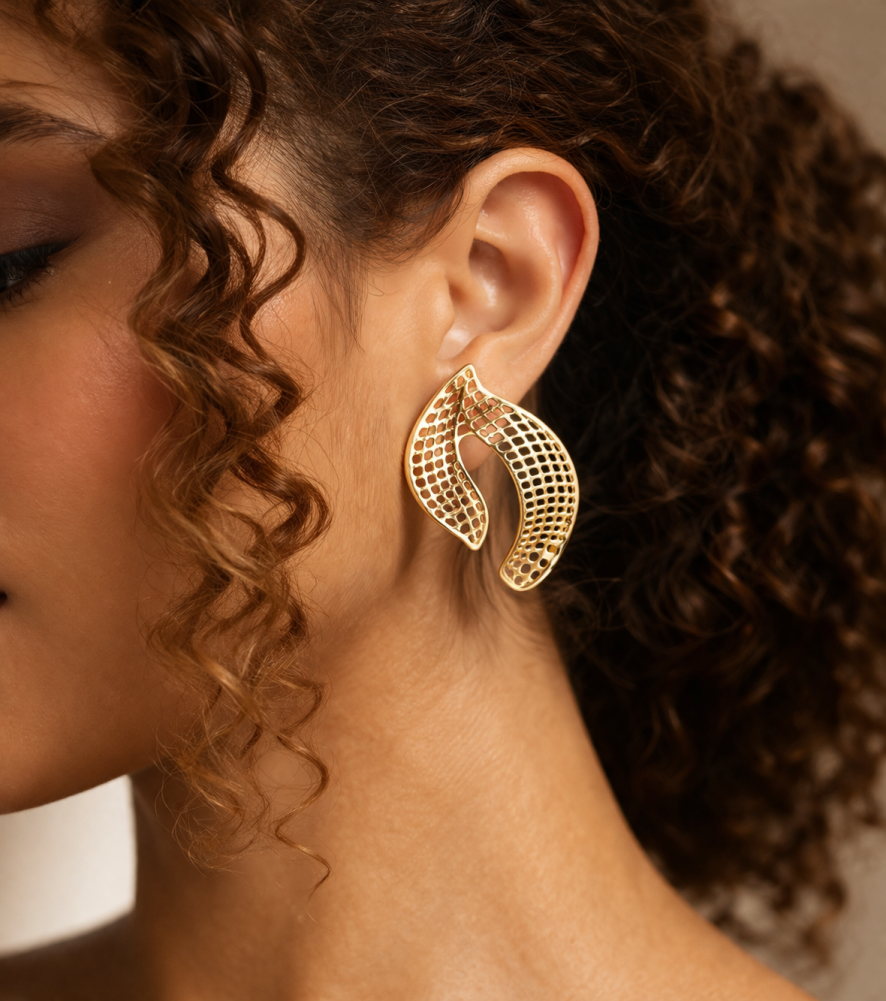 Brinco Curva Orgânica Dourado Vazado Luxo242801