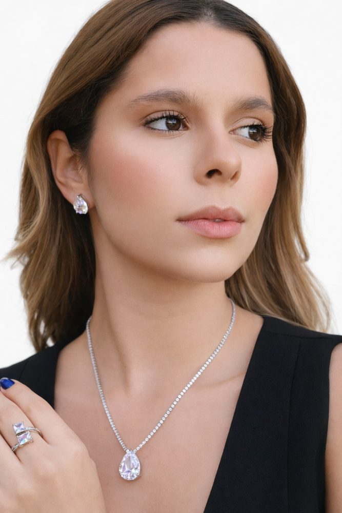 Conjunto Gota Cristal Elegance 1667 colar e brinco