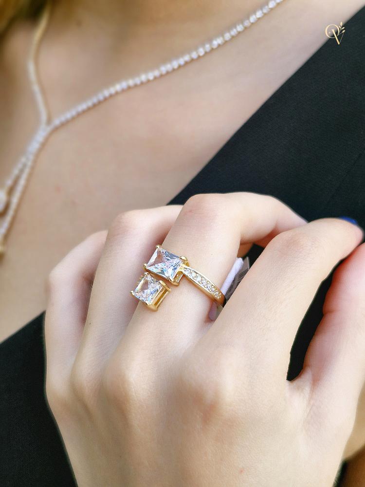 Duas pedras centrais quadradas com brilho cristalino
