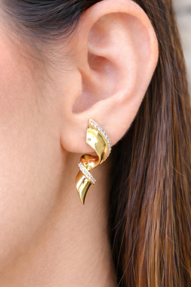Brinco espiral de zircônia no ouro